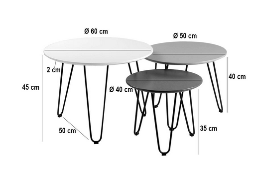 Set mesas centro FABIO blanco+azul+gris oscuro