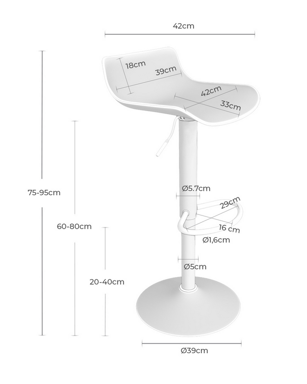 Medida entre patas (trasera): ø 39 cm
