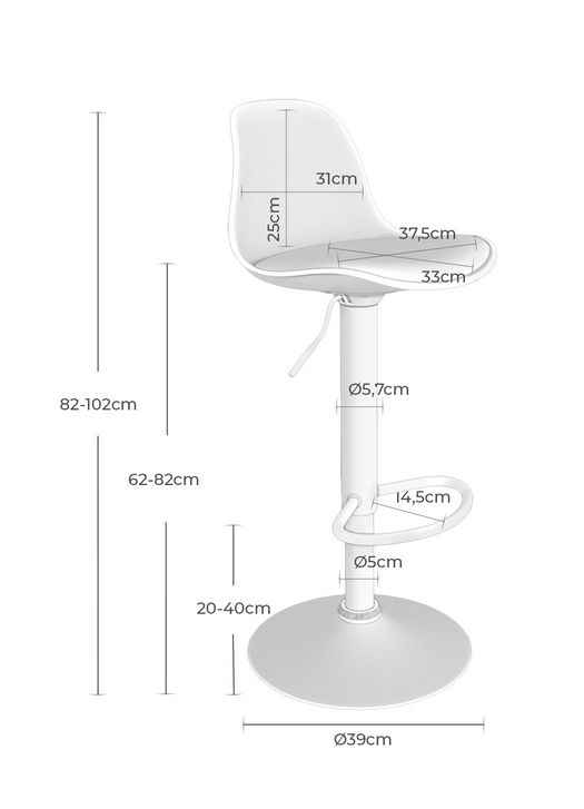 Medida entre patas (trasera): ø 39 cm